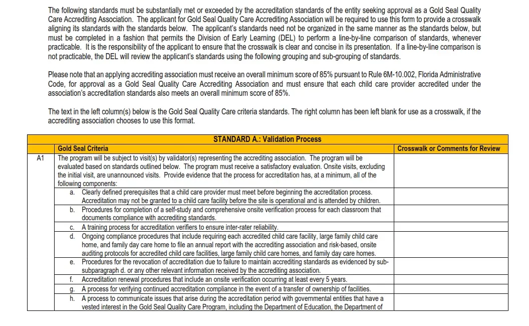 Form DEL-GS03 CCF Accrediting Standards – Childcare Facilities
